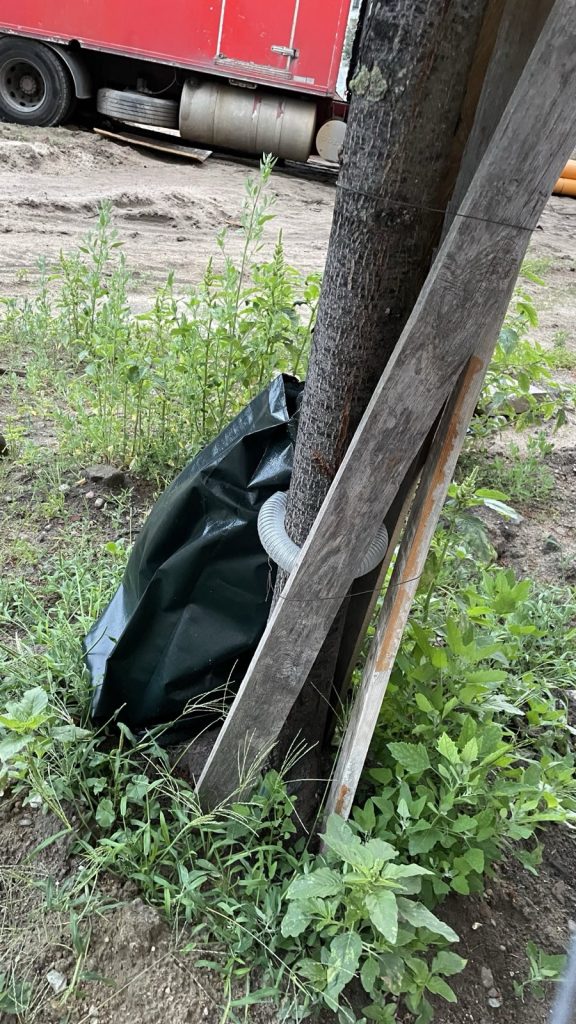 - przy młodych drzewach zainstalowano worki nawadniające,